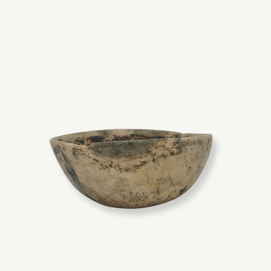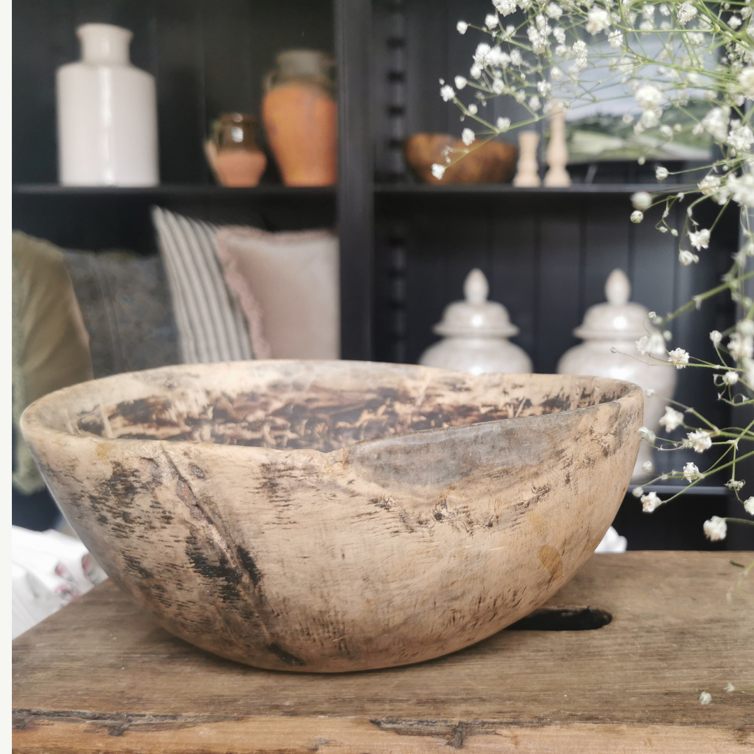 The patina and honest wear of this antique bowl is really special and we hope we can find it the right home to continue its history.