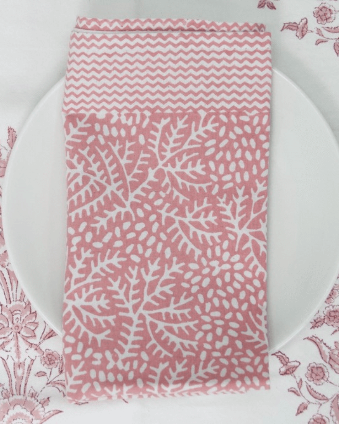 pink napkins, cotton napkins, block print napkins, tablecloth and napkins, rosie dhalia, floral napkins, pink minerals tablecloth