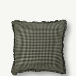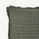 Olive Green Check Cotton Ruffle Cushion