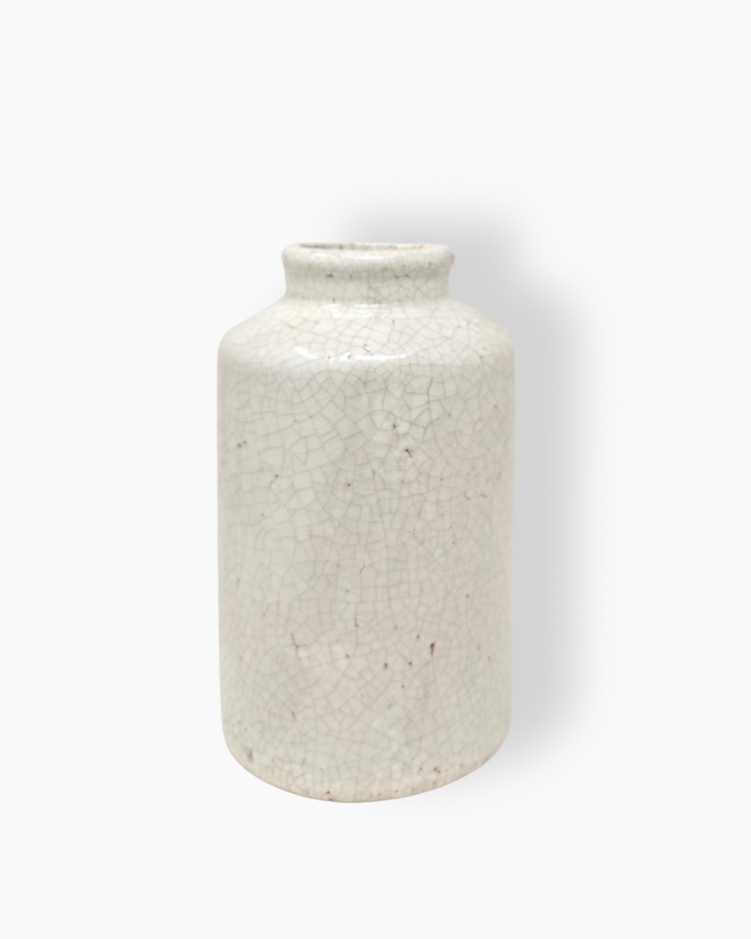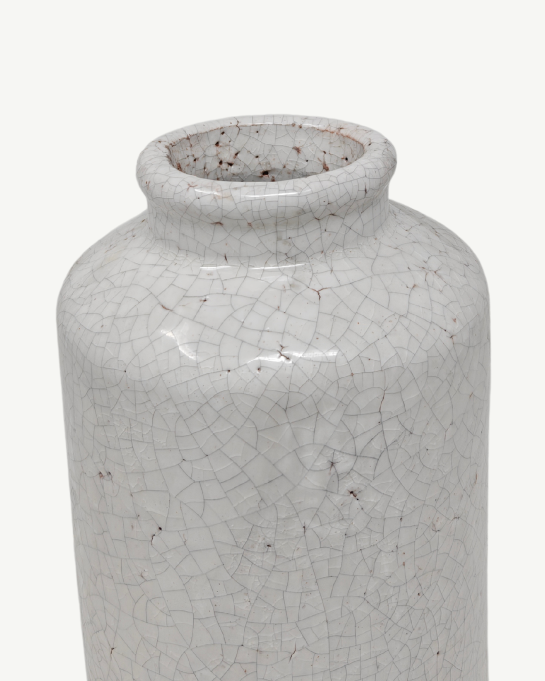 Handmade white ceramic crackle glaze vase ideal for displaying dried flowers or adding a statement piece to any room.